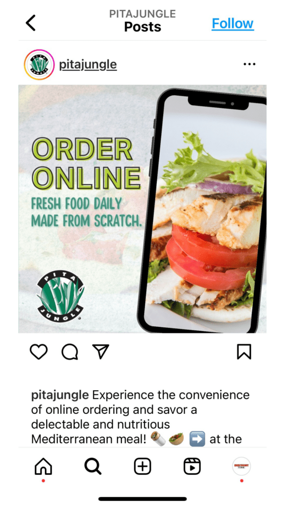 Pita Jungle aimed to increase its social media impressions to reach more customers. Colling Media stepped in to help by updating Pita Jungle’s approach to posting on Instagram and Facebook.
